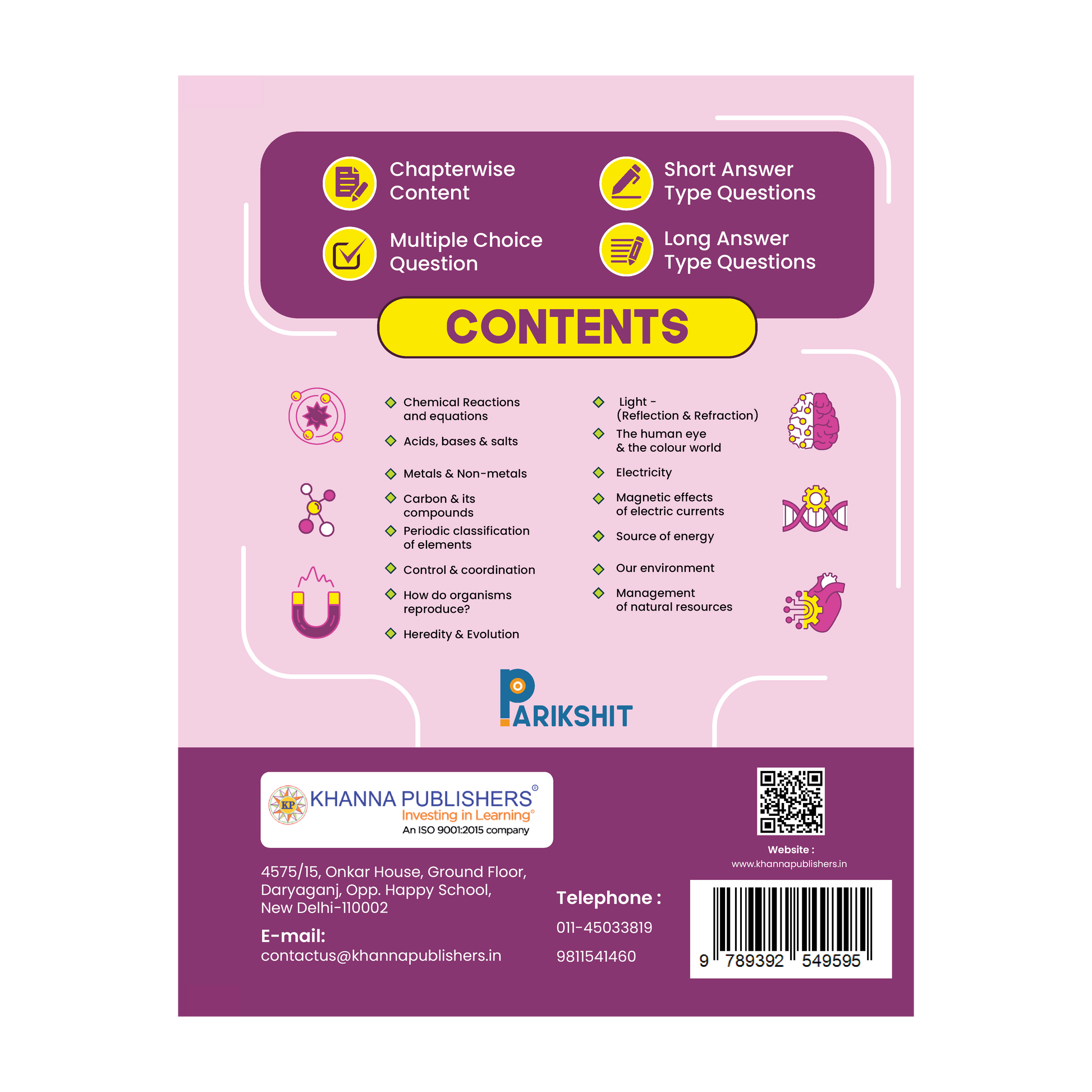 The NCERT Exampler is an invaluable resource fro students seeking to excel in their studies and competitive exams.However , the true challenge often lies in deciphering the underlying principles and applying them effectively. This book addresses that challenge by offering clear , concise explanations and practical strategies for tackling each question. Table of Contents : 1. Chemical Reactions & Equations 2. Acids , Bases & Salts 3. Metals & Non-Metals 4. Carbon & Its Compounds 5. Periodic Classification of Elements 6. Life Processes 7. Control & Coordination 8. How do Organisms Reproduce ? 9. Heredity & Evolution 10. Light Reflection and Refraction 11. The Human Eye and the Color World 12.Electricity 13. Magnetic Effects of Electric Currents 14. Source of Energy 15. Our Environment 16. Management of Natural Resources