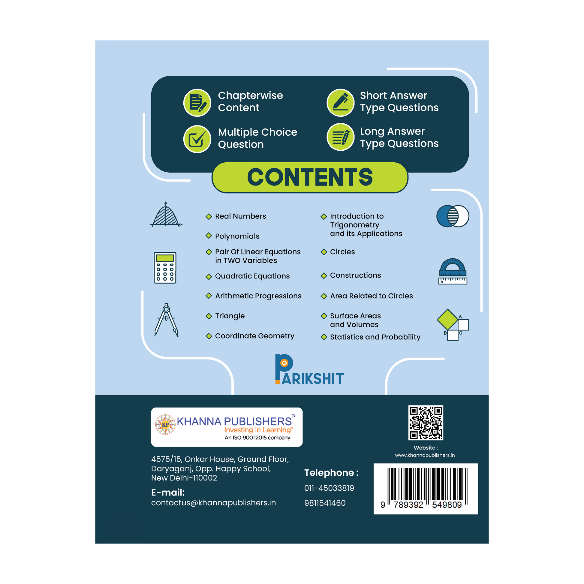 This book isn't just about solving problems - it's designed to make maths easier to understand and more enjoyable. With clear explanations and step by step solutions , we aim to help you tackle even the trickiest questions with confidence. The NCERT Exemplar questions are here to challenge you, sharpen your thinking , and build your problem -solving skills. Table of Contents: 1. Real Numbers 2. Polynomials 3. Pair of Limear Equations in Two Variables 4. Quadratic Equations 5. Arithmetic Progresssions 6. Triangles 7. Coordinate Geometry 8. Introduction to Trignometry & Its Applications 9. Circles 10. Constructions 11. Area Related to Circles 12. Surface Areas & Volumes 13. Statstics & Probability.